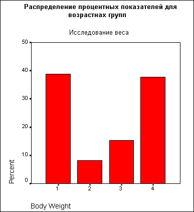 Мы хотим построить столбчатую диаграмму для процентных показателей частот четырёх возрастных групп (переменная ak).