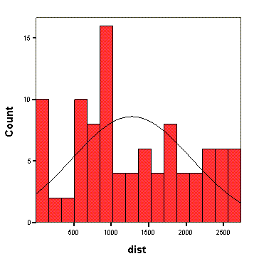 Гистограммы отображают распределение переменных, принадлежащих к интервальной шкале. При таком отображении значения переменной разделяются на интервалы, производится подсчёт частот попадания отдельных значений переменных в эти интервалы и после этого полученные показатели представляются в форме столбцов, расположенных в непосредственной близости друг к другу. В соответствии с установками по умолчанию, количество и ширина интервалов выбирается программой автоматически; при желании эти величины могут быть установлены пользователем.